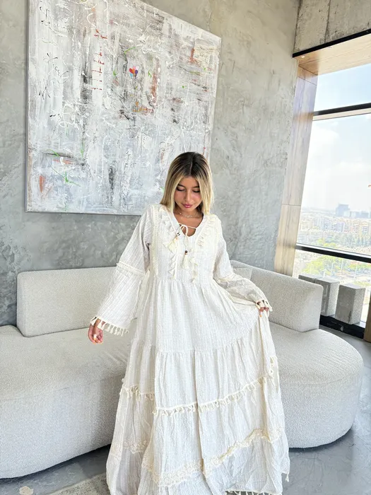 שמלת מקסי בסגנון בוהו שיק גזרת אוברסייז מחמיאה,