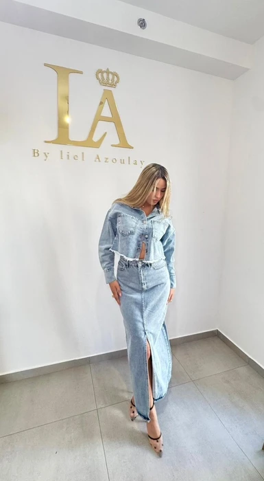 חצאית ג’ינס – חלק מסט DENIM המושלם עם ז’קט תואם