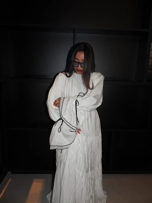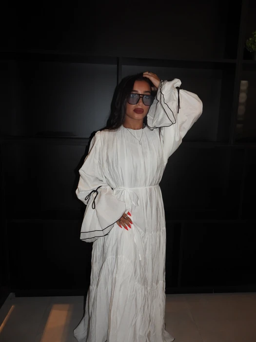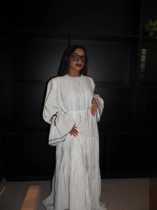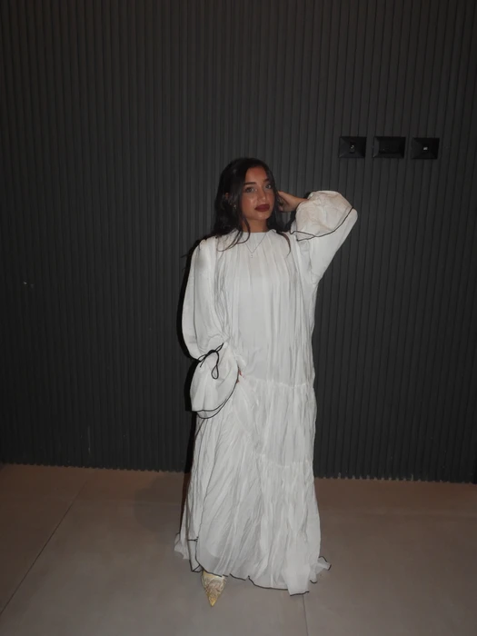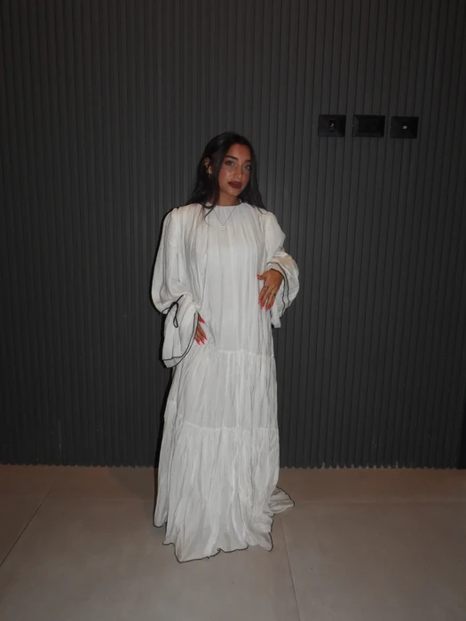 שמלת בגזקת מקסי אוברסייז מלאת בד.