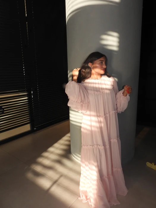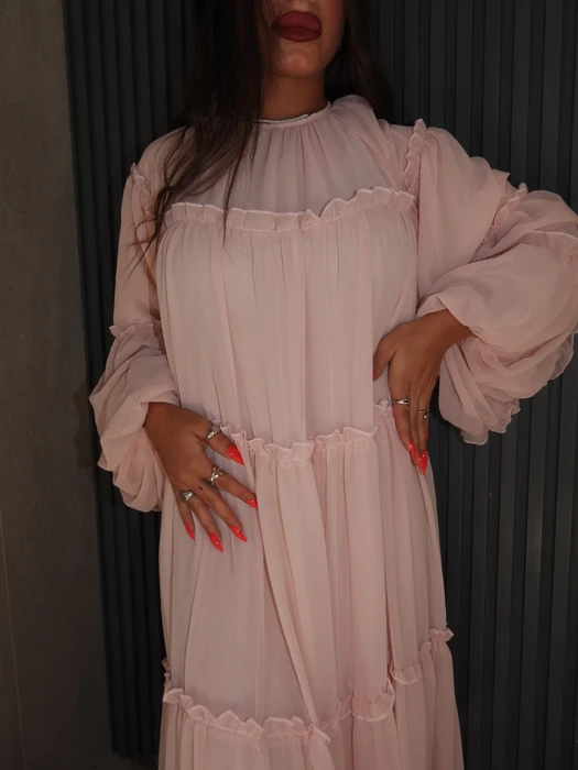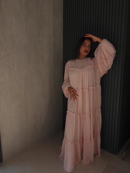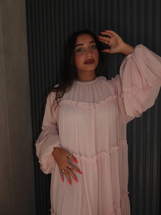 שמלת קומות מלאת בד עם שרוולים מיוחדים