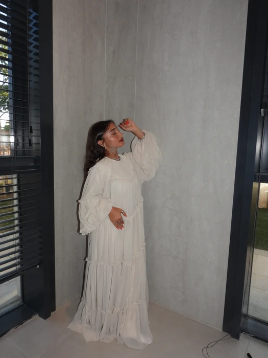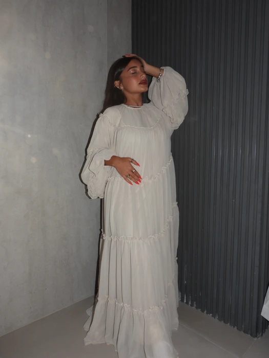 שמלת קומות מלאת בד עם שרוולים מיוחדים